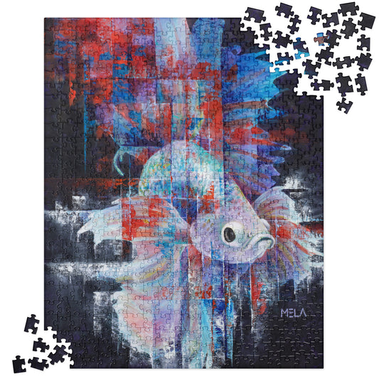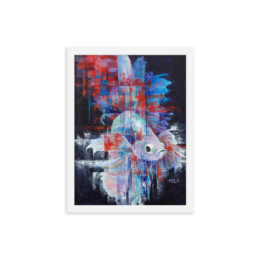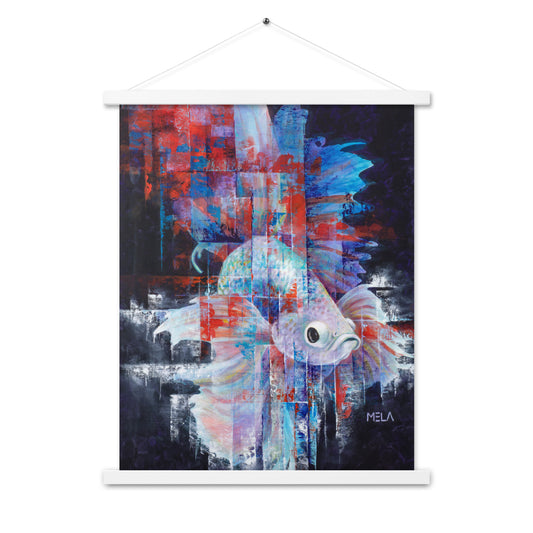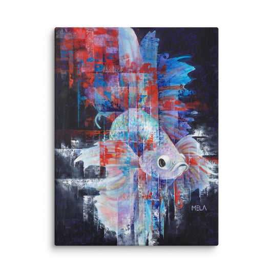 Drawing on her lifelong love of animals, MELA found her muse in the flowing grace of betta fish, a species she admired for years. Their elegant fins, combined with her distinctive layered acrylic technique, bring this painting to life. The textures and intricate details create a sense of pixelation and depth, as if gazing through layers of time and space. This unique fusion of natural beauty and artistic style invites viewers to immerse themselves in a multi-dimensional world.